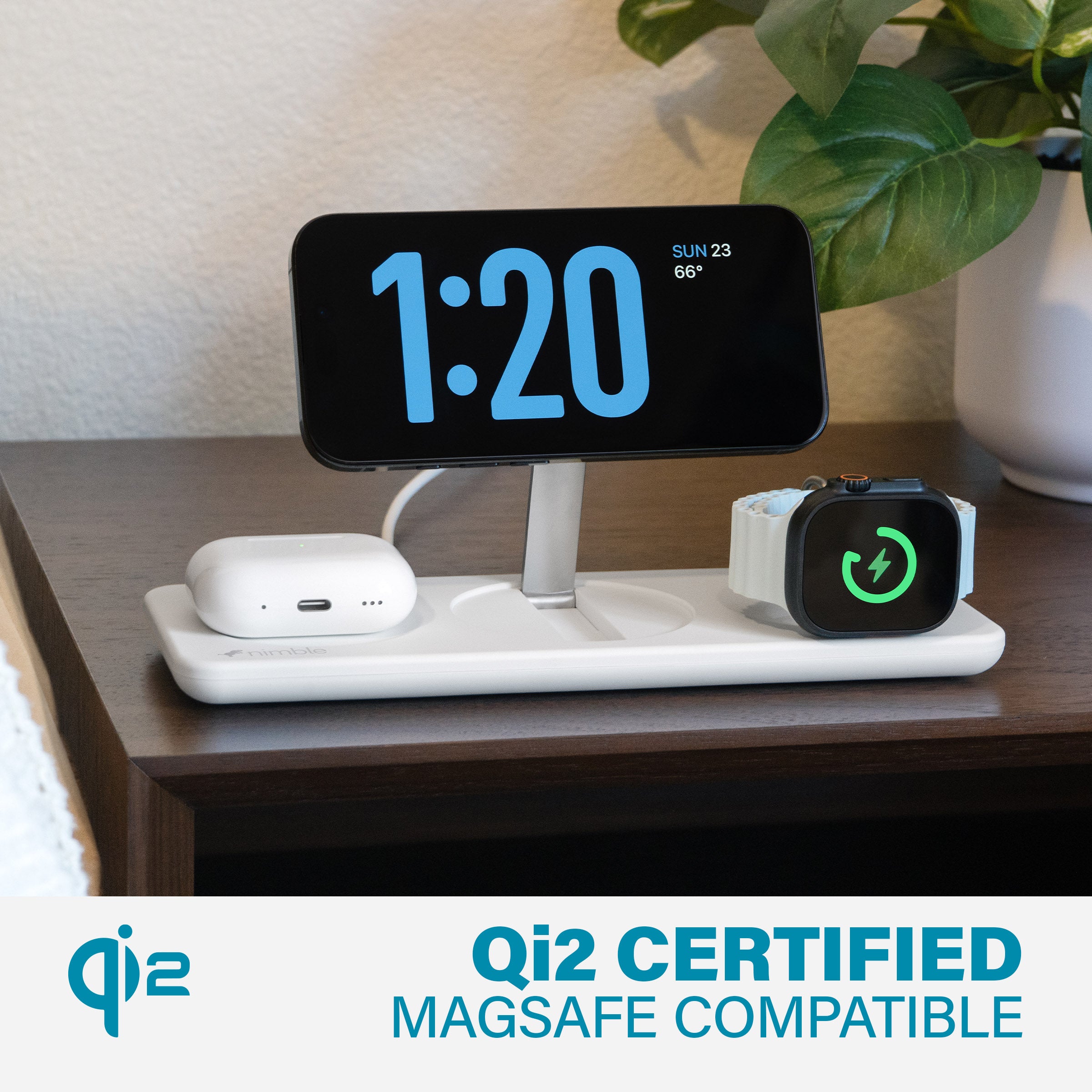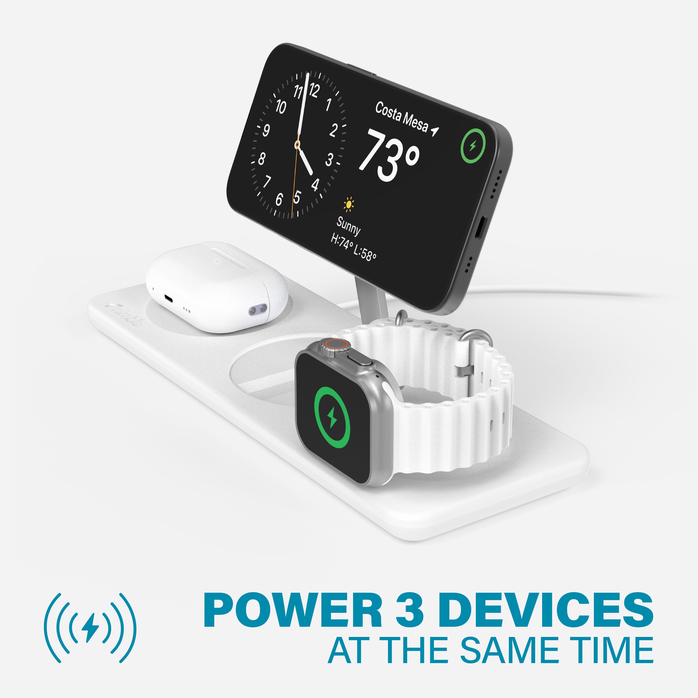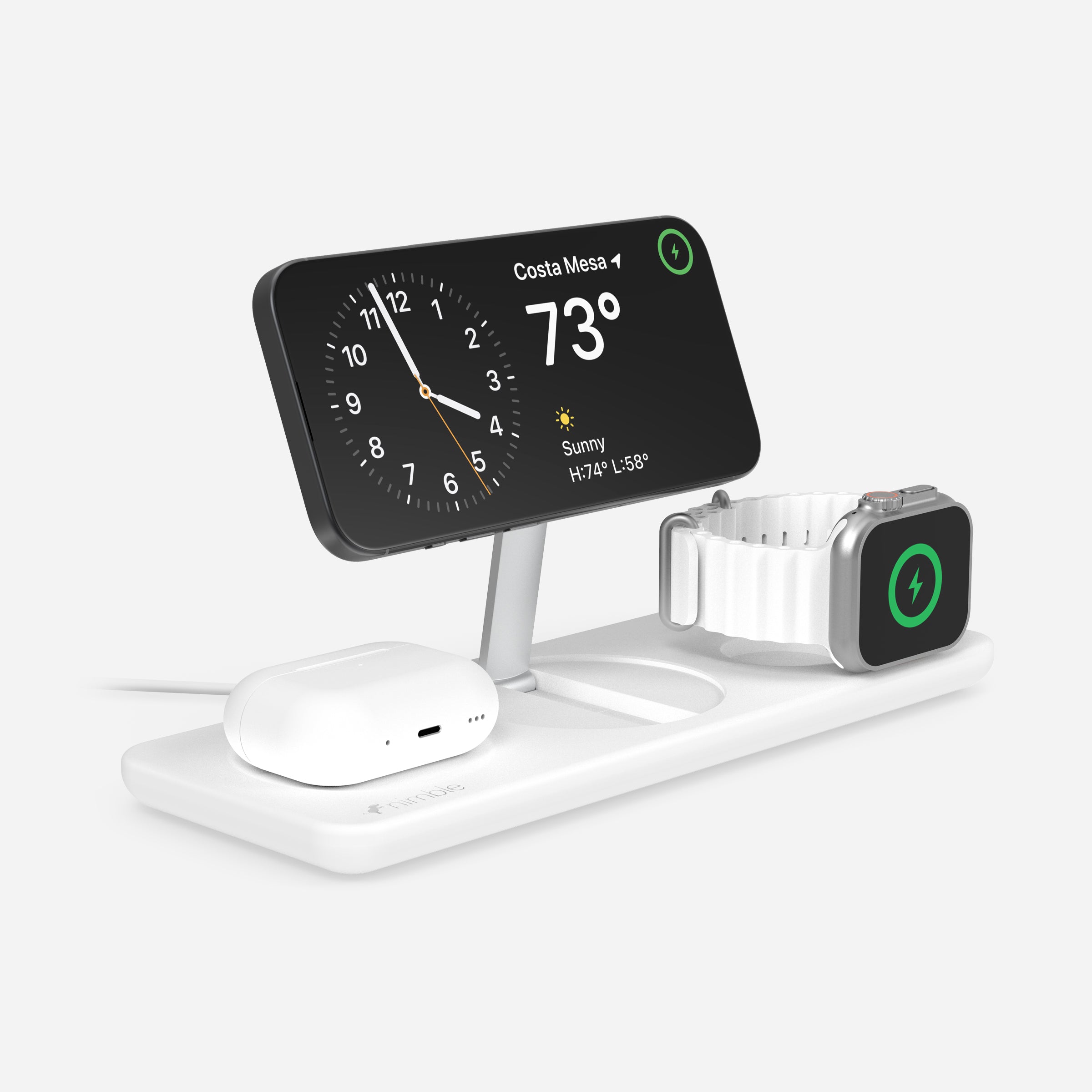 Power your Apple devices flat, or use the adjustable stands to charge upright and view in Standby mode.