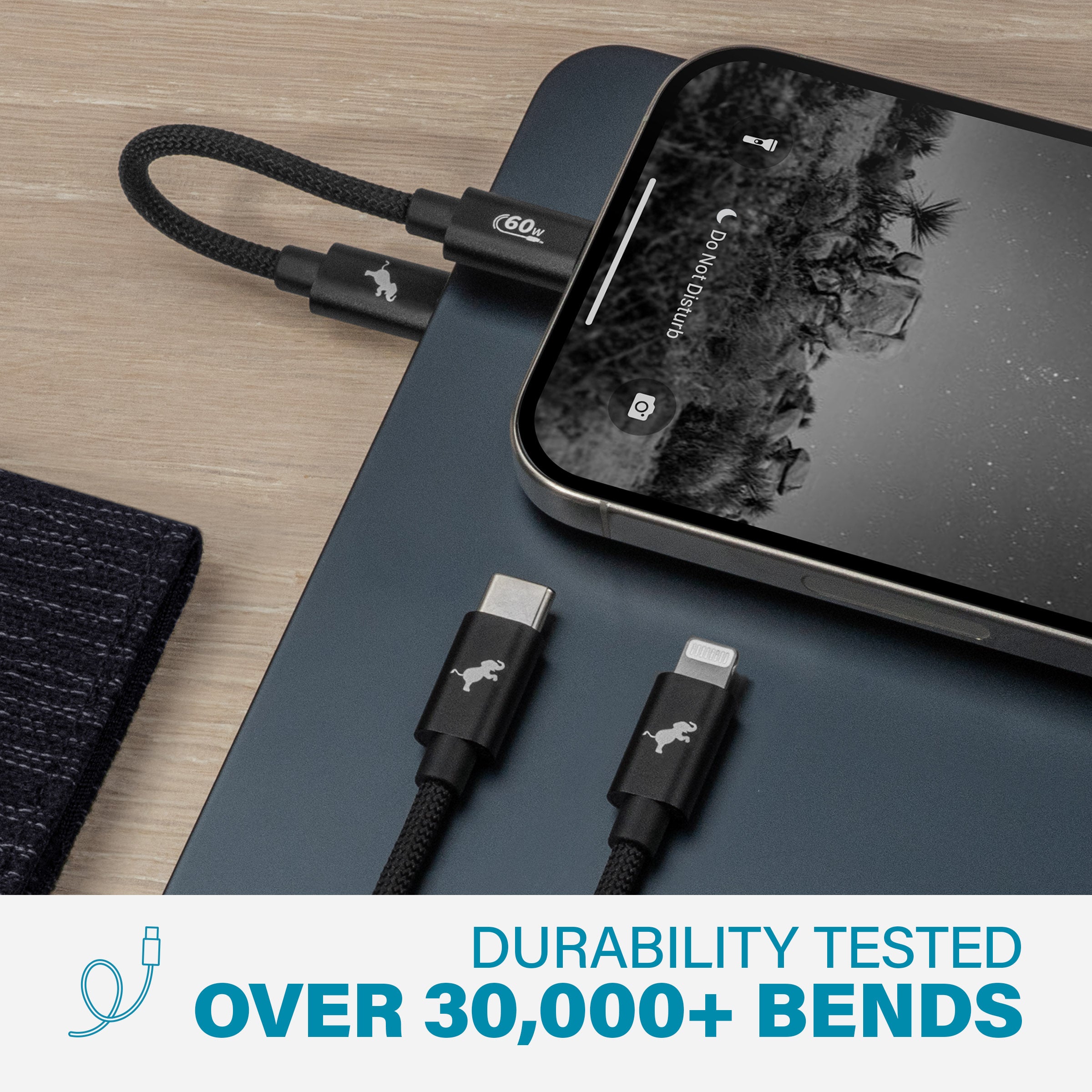 Made with a fabric derived from 100% recycled plastic, 100% recycled aluminium cable heads, and packaged in plastic-free post-consumer scrap paper for an average savings of -6.3 lbs of CO2 compared to other cables. Plus, includes free e-waste recycling for your old tech!