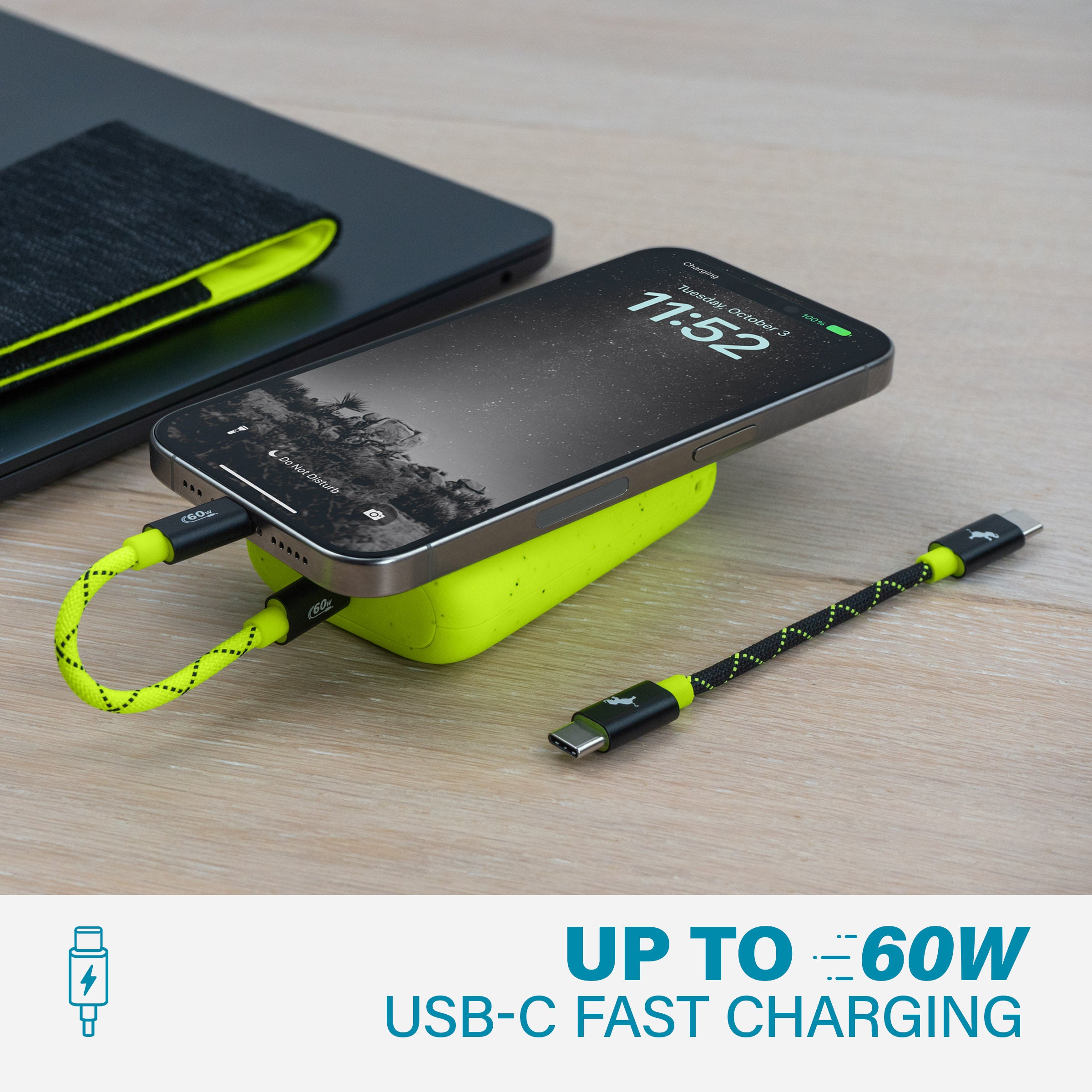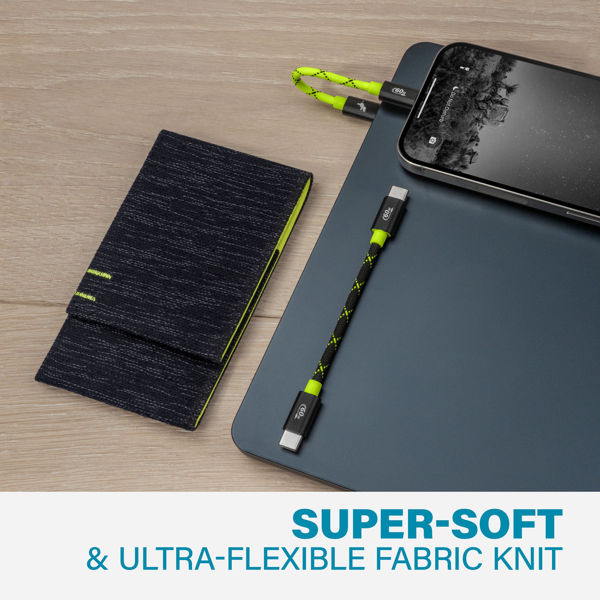 This handy duo of 5" inch, fabric-knit USB-C cables offer up to 60W charge speeds, making it an essential addition to any work, school or travel bag.