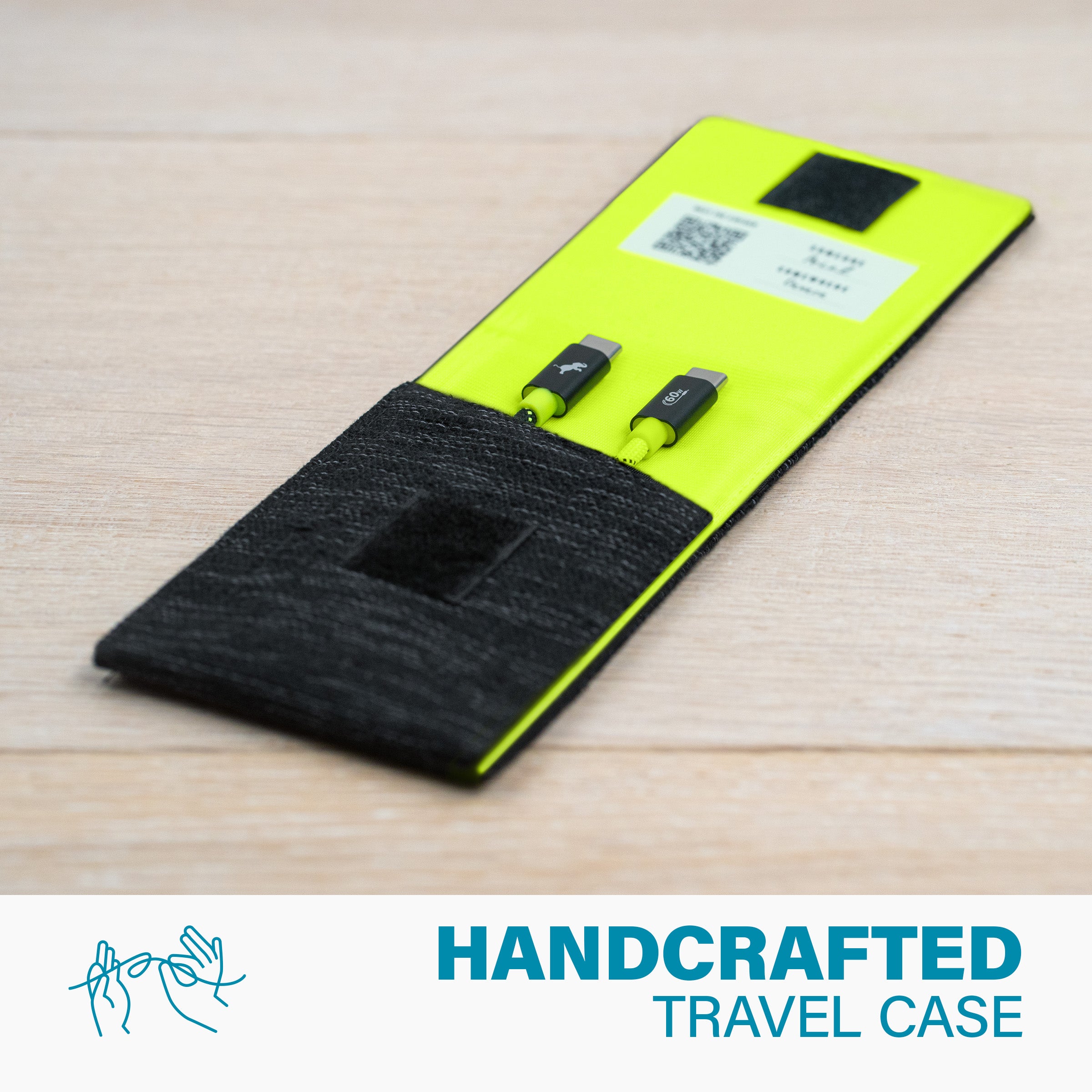 Every Travel Kit case is handcrafted using locally-sourced recycled materials, and features a unique label signed by the artisan involved in its creation, along with a QR Code to learn about their story.