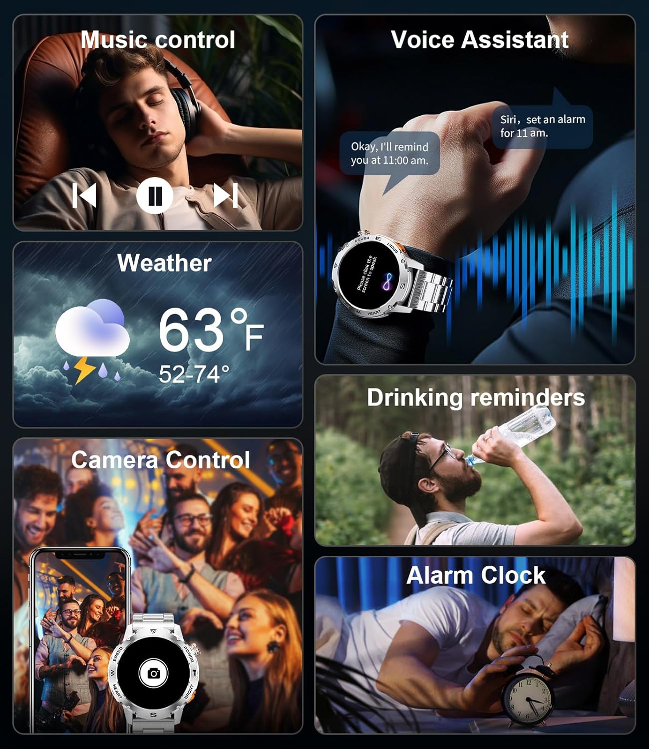 - 【High -quality & multi -functional】Crafted from 304 stainless steel, ensuring durability, and scratch resistance. You can confidently wear them in any environment. When hiking or in situations where it's inconvenient to take out your phone, LIGE watch allows you to make phone calls, check the weather forecast, control music playback, and perform other operations directly. You don't need to worry about damaging your phone in harsh environments,accomplish your tasks seamlessly through the watch.