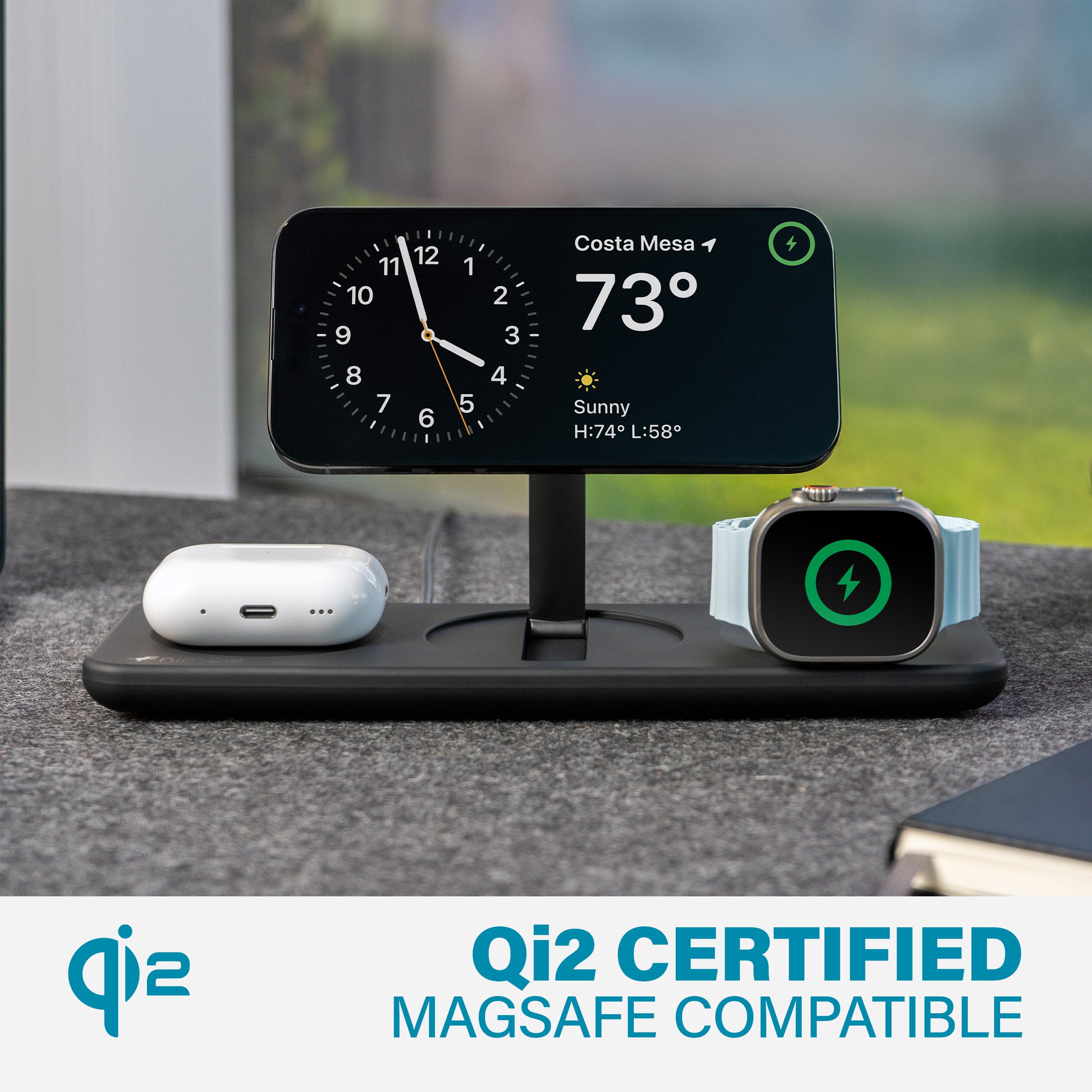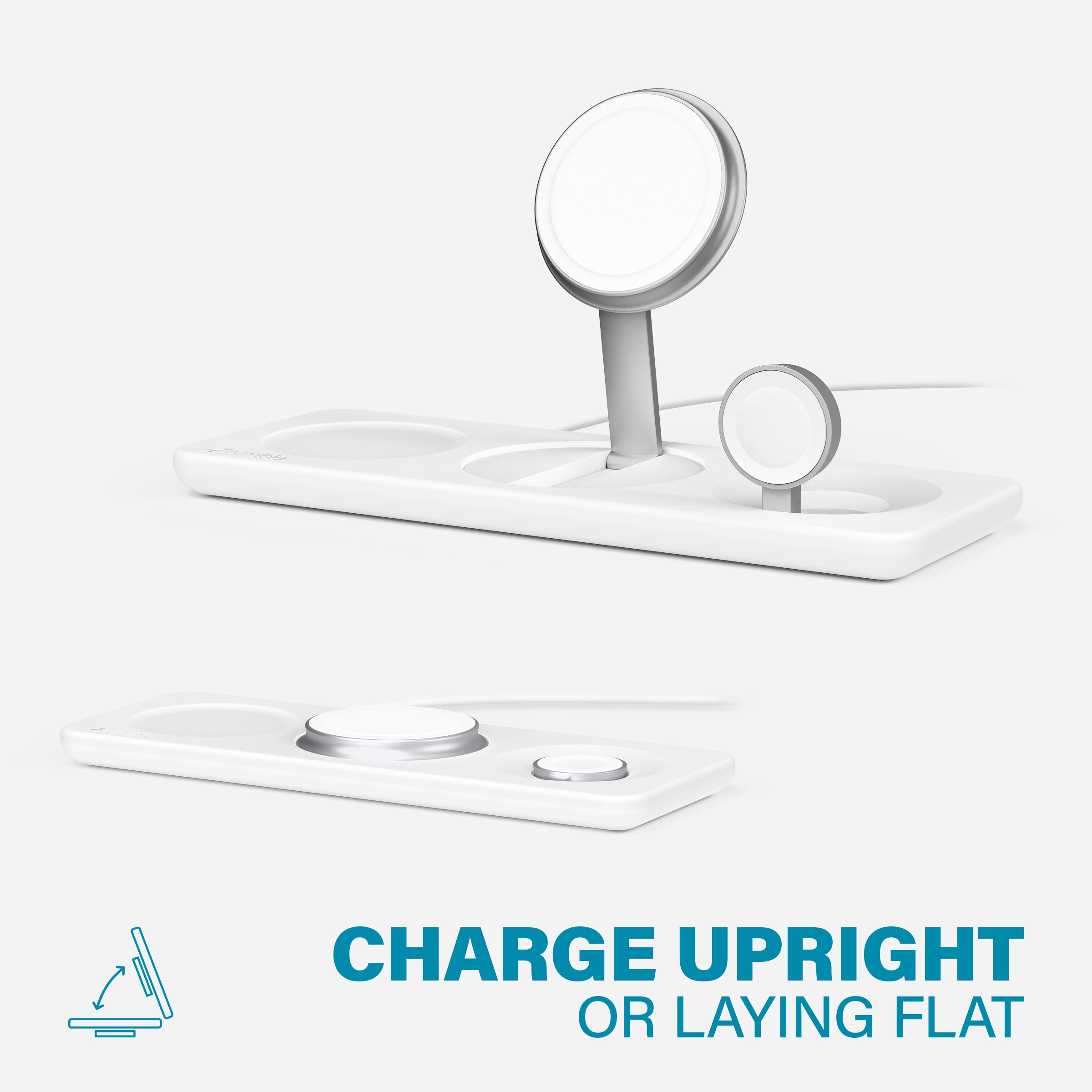 Power your Apple devices flat, or use the adjustable stands to charge upright and view in Standby mode.
