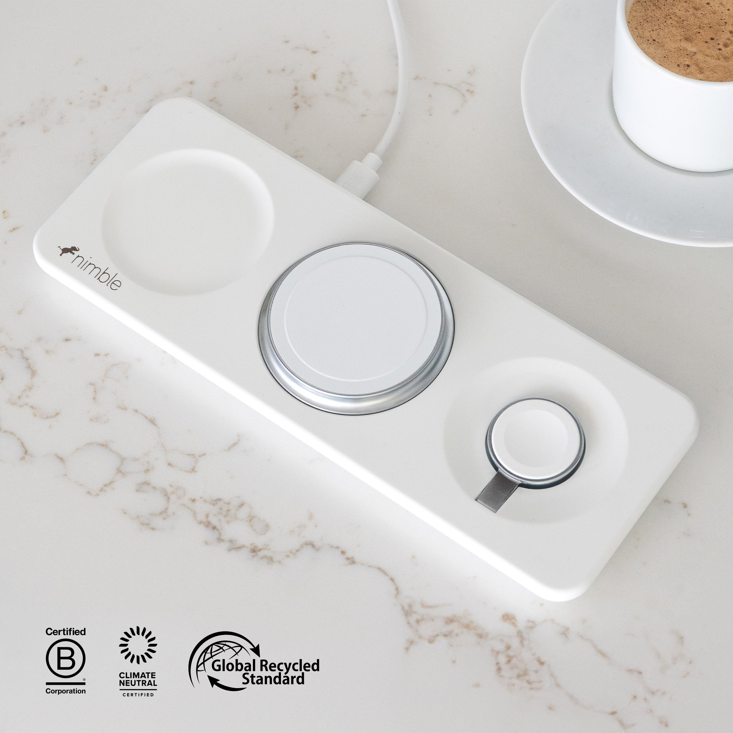 Dedicated charging zones to power your iPhone, Apple Watch, and AirPods simultaneously in one convenient space. Eliminates the need for multiple chargers and extra cables, keeping your setup clutter-free, simple and organized.